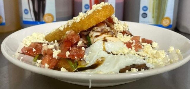 Grilled mushrooms, baby spinach, poached eggs, housemade bruschetta & crumbled feta drizzled with glazed balsamic & olive oil.