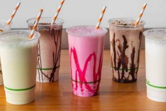 Homemade Chicken strips with a side of fries with a milkshake or popper