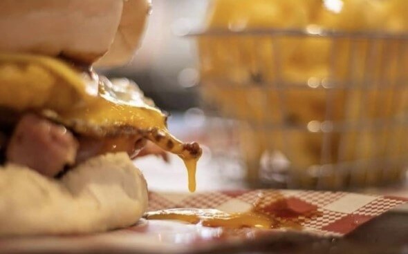 Hashbrowns sandwiched with beef patty, double bacon, double cheese and mustard, BBQ sauce